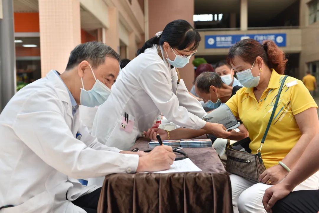 在义诊现场,心脏医学中心医护人员细心地为义诊患者测量血压、健康咨询,同时为现场候诊患者进行了高血压防治的健康讲座,向来院患者解释如何识别高血压、高血压危害和高血压病人自我保健要点等健康知识,倡导正确改善生活方式和科学防治,现场还免费发放健康教育宣传资料。