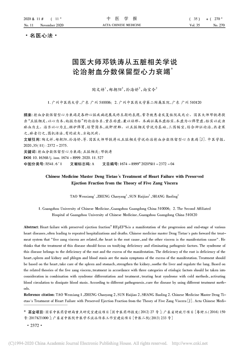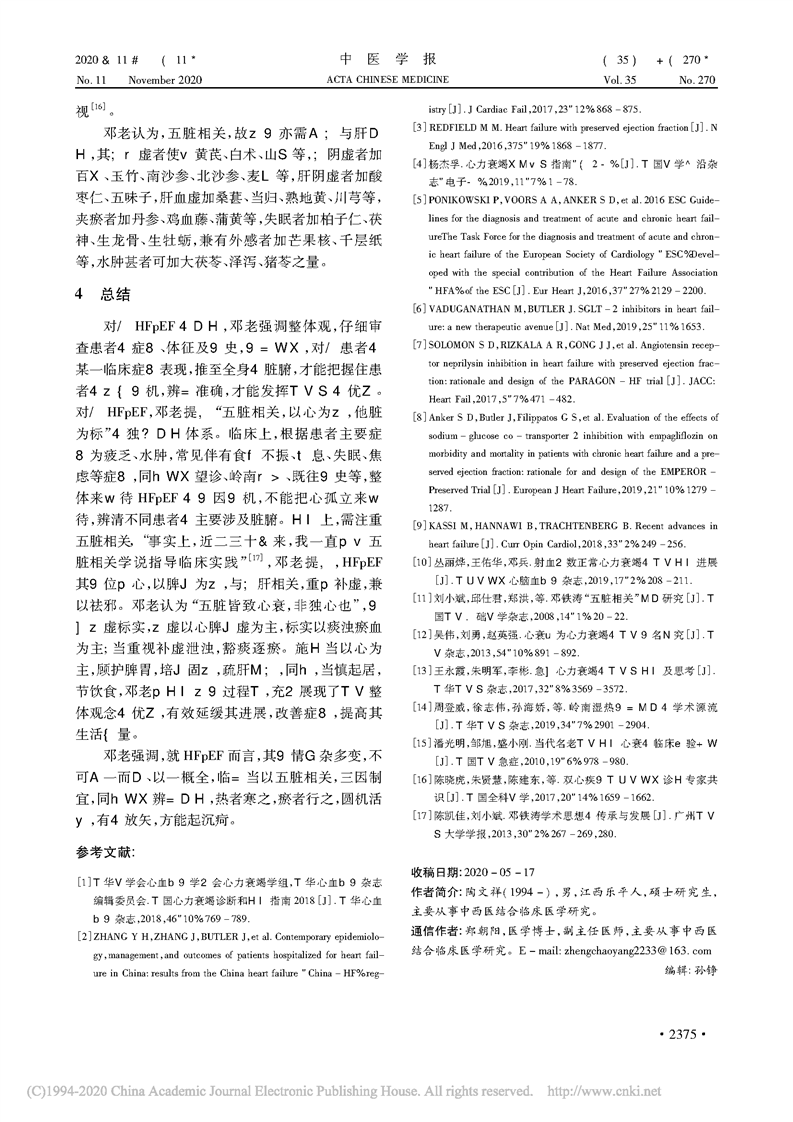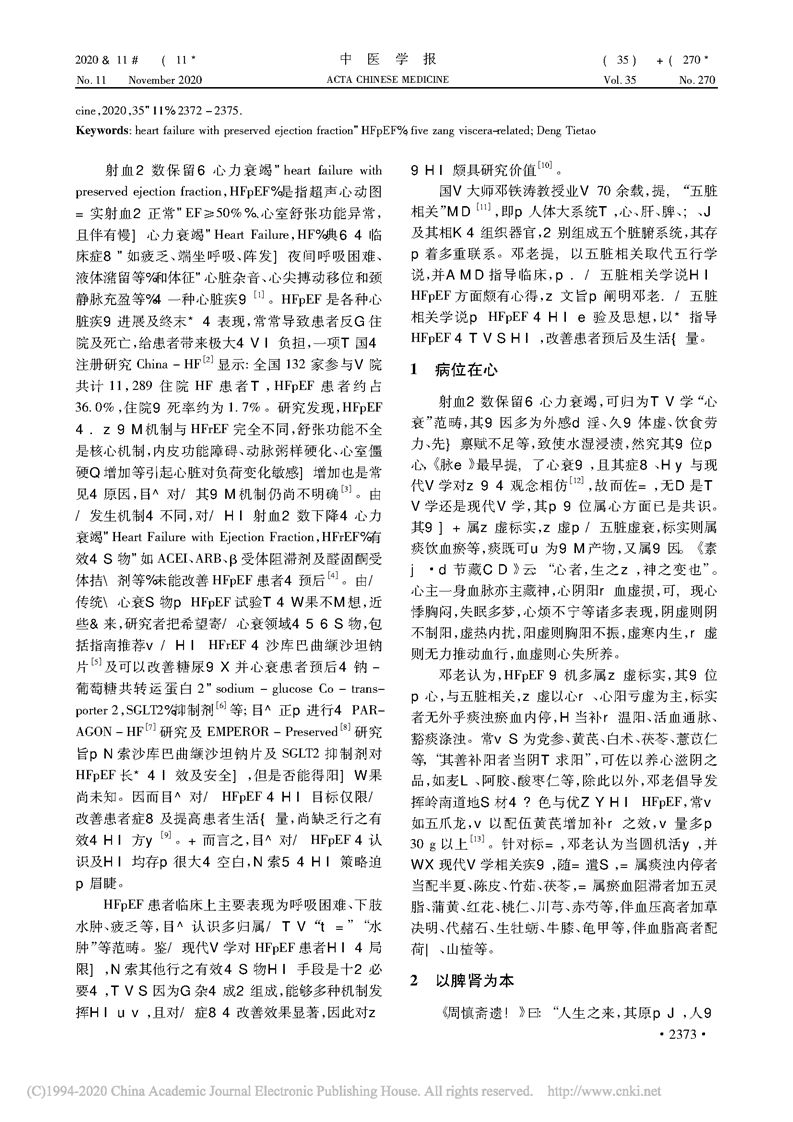 国医大师邓铁涛从五脏相关学...论治射血分数保留型心力衰竭_陶文祥