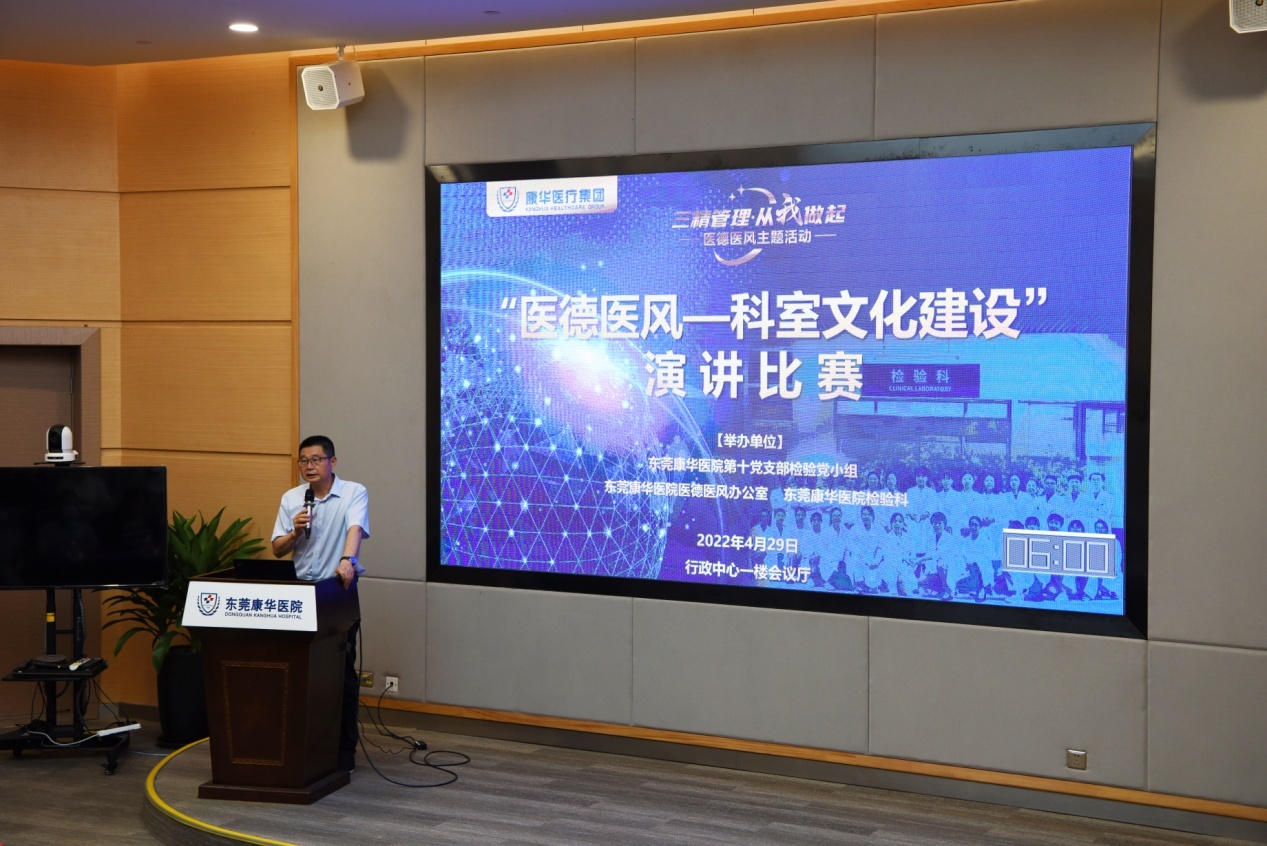 为响应康华医院整肃行业之风,强化医德医风教育的号召。4月29日,我院检验科联合第十党支部检验党小组、医德医风办公室共同举办“医德医风—科室文化建设”演讲比赛。